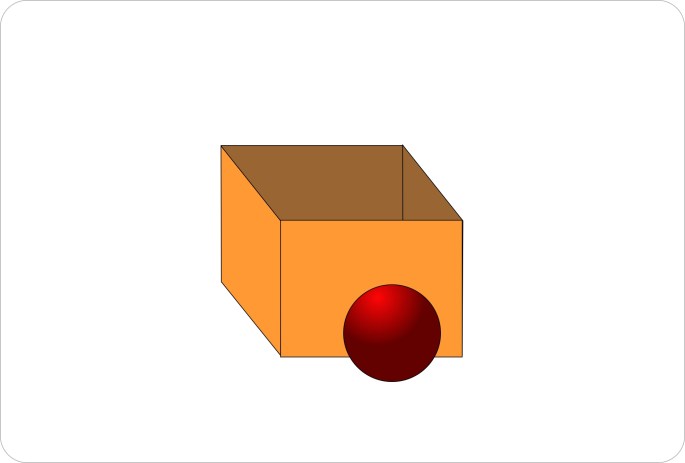 The Ball is behind the box. / La pelota está detrás de la caja.